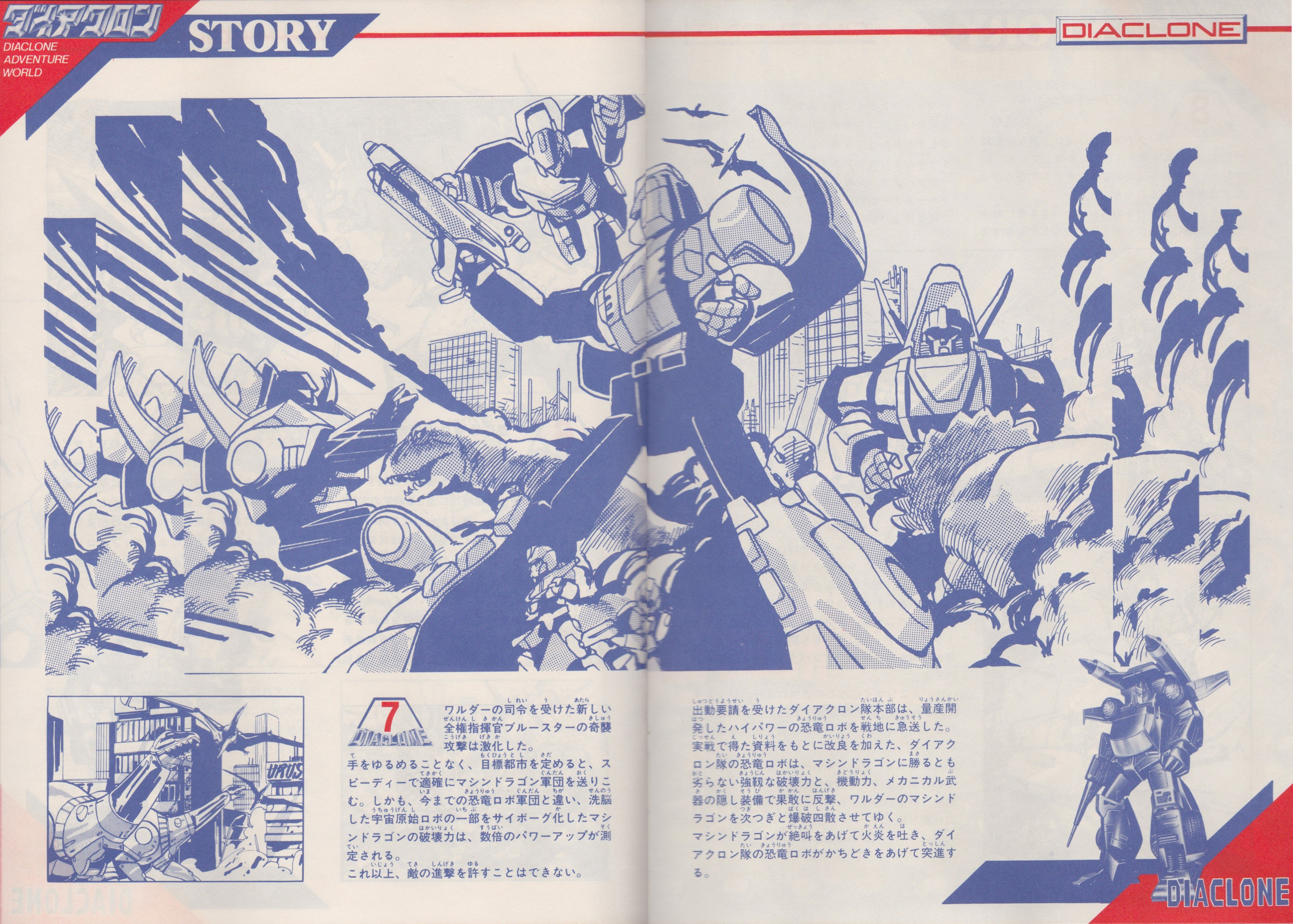 On Earth, the dinosaur troops led by Blue Star developed a new cyborg dinosaur, Machine Dragon, and use it to create the strongest force to set Earth ablaze with invasion, and we, the Diaclone Corps, face them.